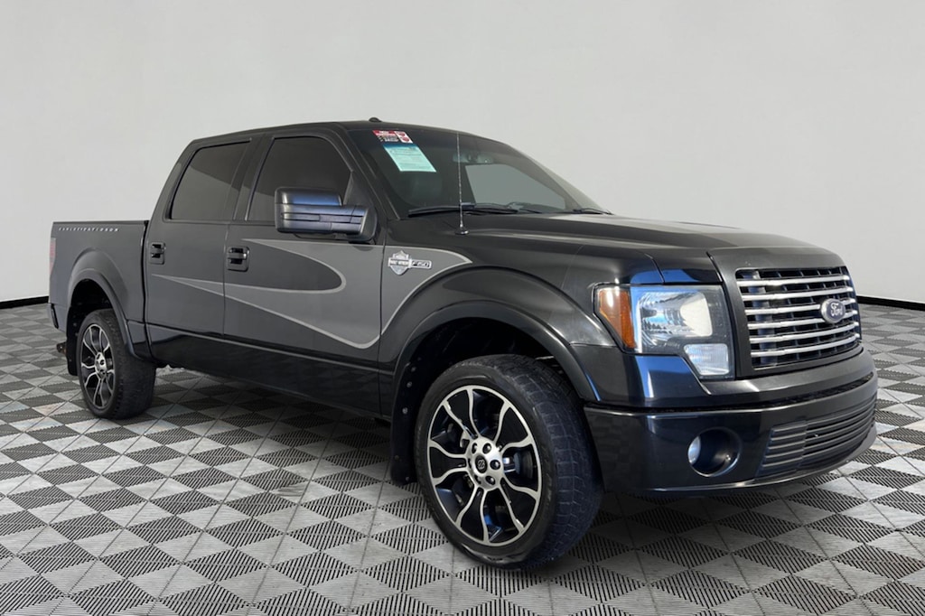 Tuxedo Black Metallic exterior and Black interior. Heated/Cooled Leather Seats, Navigation, Moonroof, Running Boards, Back-Up Camera, Heated Rear Seat, Trailer Hitch, Aluminum Wheels, 6.2L EFI V8 ENGINE, 4x4. READ MORE! KEY FEATURES INCLUDE Leather Seats, Navigation, Sunroof, 4x4, Heated Driver Seat, Heated Rear Seat, Cooled Driver Seat, Back-Up Camera, Running Boards, Premium Sound System, Satellite Radio, iPod/MP3 Input, Onboard Communications System, Trailer Hitch, Aluminum Wheels MP3 Player, Third Passenger Door, Privacy Glass, Keyless Entry, Steering Wheel Controls. OPTION PACKAGES 6.2L EFI V8 ENGINE (STD). Ford Harley-Davidson with Tuxedo Black Metallic exterior and Black interior features a 8 Cylinder Engine with 411 HP at 5500 RPM*. EXPERTS REPORT F-150 has won the Motor Trend Truck of the Year® award more times than any other truck. -Manufacturers website. AFFORDABLE Was $25,995. This F-150 is priced $2,200 below Kelley Blue Book. Approx. Original Base Sticker Price: $52,300*. .