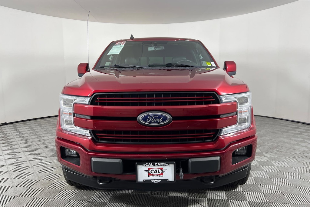LARIAT trim, Ruby Red Metallic Tinted Clearcoat exterior and Black interior. FUEL EFFICIENT 23 MPG Hwy/17 MPG City! Heated/Cooled Leather Seats, Moonroof, Hitch, Back-Up Camera, 4x4, Turbo Charged Engine, Chrome Wheels, LARIAT SPORT APPEARANCE PACKAGE, EQUIPMENT GROUP 502A LUXURY, TRAY STYLE FLOOR LINER, TRANSMISSION: ELECTRONIC 10-SPEED AUT... TWIN PANEL MOONROOF, POWER-DEPLOYABLE RUNNING BOARDS, ENGINE: 3.5L V6 ECOBOOST. AND MORE! KEY FEATURES INCLUDE Leather Seats, 4x4, Heated Driver Seat, Cooled Driver Seat, Back-Up Camera, iPod/MP3 Input, Onboard Communications System, Trailer Hitch, Dual Zone A/C, Smart Device Integration, WiFi Hotspot, Apple CarPlay®, Heated Seats, Heated Leather Seats, Heated/Cooled Seats. MP3 Player, Keyless Entry, Privacy Glass, Steering Wheel Controls, Child Safety Locks. OPTION PACKAGES EQUIPMENT GROUP 502A LUXURY Rain-Sensing Wipers, Power Tilt/Telescoping Steering Column w/Memory, Windshield Wiper De-Icer, Remote Start System w/Remote Tailgate Release, Lariat Chrome Appearance Package, 2 chrome front tow hooks, Single-Tip Chrome Exhaust, Chrome Angular Step Bars, Chrome Door & Tailgate Handles w/Body-Color Bezel, Wheels: 18 Chrome-Like PVD, Chrome 2-Bar Grille w/4 Minor Bars, painted silver surround and background mesh, Chrome Skull Caps on Exterior Mirrors, LED Sideview Mirror Spotlights, high-intensity LED security approach lamps, Radio: B&O Sound System by Bang & Olufsen, HD Radio, SiriusXM radio, 10 speakers and subwoofer, Note: When ordered w/voice-activated navigation system (50N) SiriusXM Traffic and Travel Link includes a, SiriusXM, ENGINE: 3.5L V6 ECOBOOST auto start-stop technology, GVWR: 7,000 lbs Payload Package, 3.31 Axle Ratio, TWIN PANEL MOONROOF, POWER-DEPLOYABLE RUNNING BOARDS Replaces step bar, LARIAT SPORT APPEARANCE PACKAGE unique interior finish, Box Side Decals, Single-Tip Chrome Exhaust, Wheels: 18 6-Spoke Machined-Aluminum, magnetic painted pockets, Accent-Color Angular Step Bars, 2-Bar Body-Color Grille w/4 Minor Bars, black surround and black mesh, Body-Color Front & Rear Bumpers, TRAY STYLE FLOOR LINER, TRANSMISSION: ELECTRONIC 10-SPEED AUTOMATIC selectable drive modes: normal/tow-haul/snow-wet/EcoSelect/sport (STD). Ford LARIAT with Ruby Red Metallic Tinted Clearcoat exterior and Black interior features a V6 Cylinder Engine with 325 HP at 5000 RPM*. EXPERTS RAVE Edmunds.com explains This truck steers and handles about as well as anything in the class. It has confidence-inspiring brakes, too. They feel reassuring even when towing a trailer.. Great Gas Mileage: 23 MPG Hwy. A GREAT TIME TO BUY Reduced from $35,995. This F-150 is priced $2,300 below Kelley Blue Book. Approx. Original Base Sticker Price: $48,000*. .