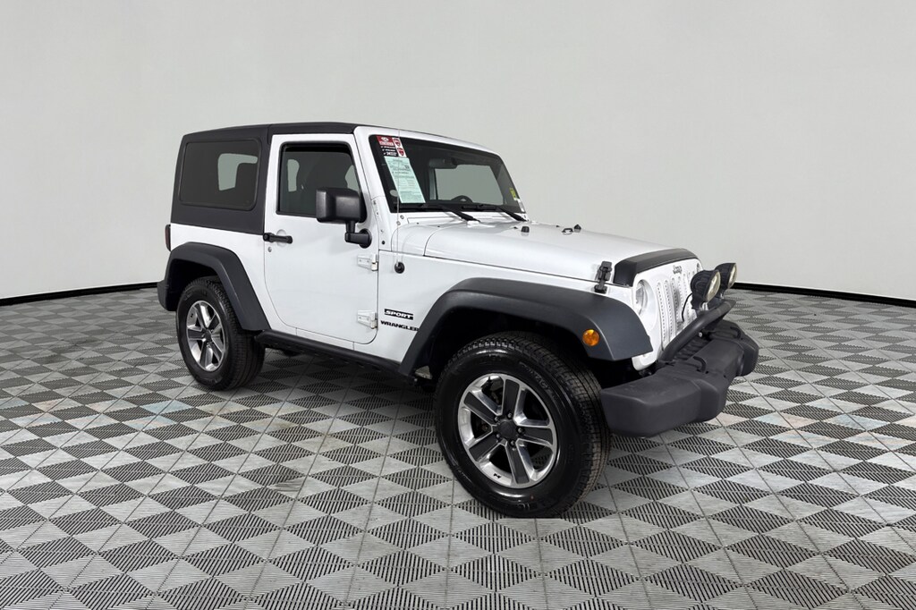 Bright White exterior and Black interior, Sport trim. Brake Actuated Limited Slip Differential, 4x4, ENGINE: 3.6L PENTASTAR VVT V6, TRANSMISSION: 6-SPEED MANUAL, RADIO: UCONNECT 130 AM/FM/CD/MP3. CLICK ME! KEY FEATURES INCLUDE 4x4, Brake Actuated Limited Slip Differential Steering Wheel Controls, Rollover Protection System, Electronic Stability Control, Bucket Seats, Brake Assist. OPTION PACKAGES TRANSMISSION: 6-SPEED MANUAL (STD), ENGINE: 3.6L PENTASTAR VVT V6 (STD), RADIO: UCONNECT 130 AM/FM/CD/MP3 (STD). Jeep Sport with Bright White exterior and Black interior features a V6 Cylinder Engine with 285 HP at 6400 RPM*. EXPERTS ARE SAYING KBB.coms review says Theres generous ground clearance, minimal overhangs, and that distinctive Jeep look, of course. Being equipped with 4-wheel drive, the Wrangler is nearly unstoppable off road.. PRICED TO MOVE Reduced from $16,995. Approx. Original Base Sticker Price: $23,000*. .
