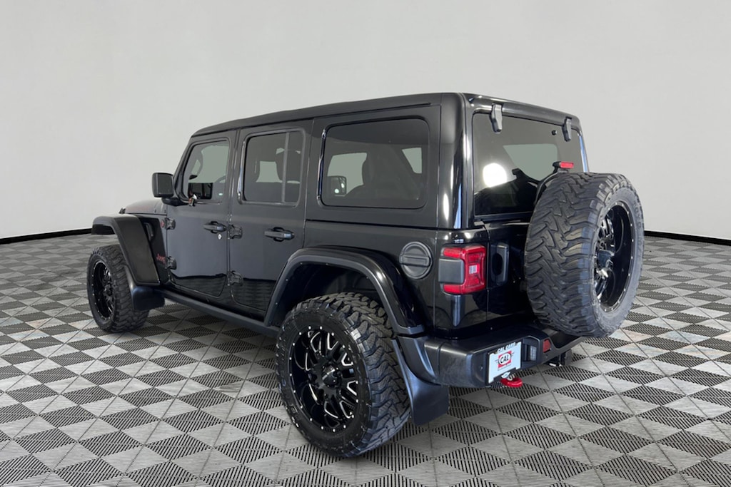 Sunroof, Heated Leather Seats, Back-Up Camera, 4x4, Turbo, Alloy Wheels, Tow Hitch, BLACK, LEATHER-FACED SEATS W/RUBICON & UTILITY GRID, iPod/MP3 Input, REMOTE START SYSTEM, ENGINE: 2.0L DOHC I-4 DI TURBO W/ESS, REMOTE PROXIMITY KEYLESS ENTRY, LED LIGHTING GROUP, SKY 1-TOUCH POWER TOP, TRAILER TOW & HD ELECTRICAL GROUP, UCONNECT 4C NAV & SOUND GROUP, COLD WEATHER GROUP, ADVANCED SAFETY GROUP, BLACK, LEATHER-FACED SEATS W/RUBICON.. SAFETY GROUP READ MORE! KEY FEATURES INCLUDE 4x4, Back-Up Camera, iPod/MP3 Input, CD Player, Aluminum Wheels, Dual Zone A/C, Brake Actuated Limited Slip Differential, Smart Device Integration MP3 Player, Privacy Glass, Child Safety Locks, Steering Wheel Controls, Rollover Protection System. OPTION PACKAGES SKY 1-TOUCH POWER TOP Rear Window Defroster, Rear Window Wiper w/Washer, Removable Rear Glass Quarter Panels, Rear Glass Quarter Panel Storage Bag, TRANSMISSION: 8-SPEED TORQUEFLITE AUTO Tip Start, Selec-Speed Control, UCONNECT 4C NAV & SOUND GROUP Off-Road Information Pages, SiriusXM Traffic, Alpine Premium Audio System, Radio: Uconnect 4C Nav w/8.4 Display, HD Radio, Auto-Dimming Rearview Mirror, For Details, Visit DriveUconnect.ca, 1-Yr SiriusXM Guardian Subscription, GPS Navigation, 5-Yr SiriusXM Traffic Subscription, SiriusXM Travel Link, 4G LTE Wi-Fi Hot Spot, SOS Call & Roadside Assistance Call, 8.4 Touchscreen, BLACK, LEATHER-FACED SEATS W/RUBICON & UTILITY GRID Leather-Wrapped Park Brake Handle, Leather-Wrapped Shift Knob, Premium Door Trim Panel, LED LIGHTING GROUP Daytime Running Lights w/LED Accents, LED Fog Lamps, LED Reflector Headlamps, LED Taillamps, COLD WEATHER GROUP Heated Steering Wheel, Front Heated Seats, SAFETY GROUP Park-Sense Rear Park Assist System, Blind-Spot/Rear Cross-Path Detection, TRAILER TOW & HD ELECTRICAL GROUP Class II Hitch Receiver, 700 Amp Maintenance Free Battery, 4- and 7-Pin Wiring Harness, 240 Amp Alternator, 4 Auxiliary Switches, ADVANCED SAFETY GROUP Advanced Brake Assist, Auto High-Beam Headlamp Control, Forward Collision Warn/Active Braking, REMOTE PROXIMITY KEYLESS ENTRY, REMOTE START SYSTEM, ENGINE: 2.0L DOHC I-4 DI TURBO W/ESS Auxiliary Battery, Stop/Start Dual Battery System, Non-Locking Fuel-Filler Cap. Jeep Unlimited Rubicon with Black exterior and Black interior features a 4 Cylinder Engine with 270 HP at 5250 RPM*. VEHICLE REVIEWS Great Gas Mileage: 24 MPG Hwy. A GREAT VALUE AutoCheck One Owner Reduced from $41,995. Approx. Original Base Sticker Price: $43,300*. .