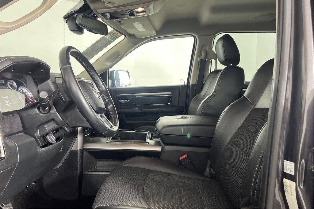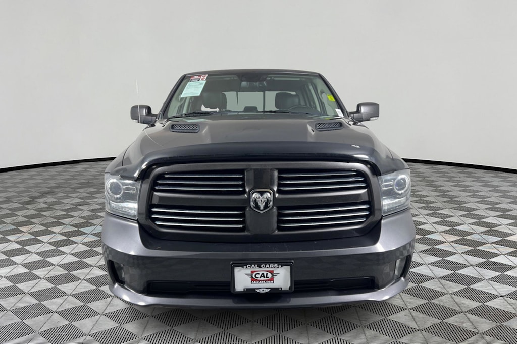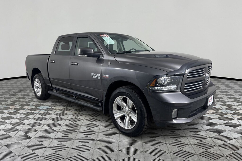 Granite Crystal Metallic exterior and Black interior. Heated Seats, Bluetooth®, iPod/MP3 Input, Satellite Radio, 4x4, Aluminum Wheels, ENGINE: 5.7L V8 HEMI MDS VVT, ANTI-SPIN DIFFERENTIAL REAR AXLE, TRANSMISSION: 8-SPEED TORQUEFLITE AUT... SPORT PREMIUM GROUP, COMFORT GROUP, CONVENIENCE GROUP, PARKVIEW REAR BACK-UP CAMERA. SEE MORE! KEY FEATURES INCLUDE 4x4, Satellite Radio, iPod/MP3 Input, Bluetooth®, Aluminum Wheels MP3 Player, Privacy Glass, Steering Wheel Controls, Child Safety Locks, Electronic Stability Control. OPTION PACKAGES SPORT PREMIUM GROUP 9 Alpine Speakers & Subwoofer, A/C w/Dual Zone Automatic Temperature Control, Humidity Sensor, ENGINE: 5.7L V8 HEMI MDS VVT (STD), CONVENIENCE GROUP Keyless Enter N Go w/Push Start, Remote Proximity Keyless Entry, Automatic High Beam Headlamp Control, Rain-Sensing Windshield Wipers, COMFORT GROUP Heated Steering Wheel, Heated Front Seats, TRANSMISSION: 8-SPEED TORQUEFLITE AUTOMATIC (DFK) (STD), ANTI-SPIN DIFFERENTIAL REAR AXLE, PARKVIEW REAR BACK-UP CAMERA. Ram Sport with Granite Crystal Metallic exterior and Black interior features a 8 Cylinder Engine with 395 HP at 5600 RPM*. EXPERTS ARE SAYING The 2015 Ram 1500 is a top contender in the full-size pickup segment, thanks to a winning combination of strong powertrains, a smooth ride and a well-trimmed cabin. -Edmunds.com. Great Gas Mileage: 21 MPG Hwy. AutoCheck One Owner Approx. Original Base Sticker Price: $44,800*. .