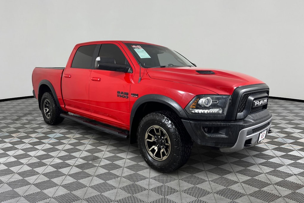 FUEL EFFICIENT 23 MPG Hwy/16 MPG City! Rebel trim. Nav System, Moonroof, Heated Seats, iPod/MP3 Input, 4x4, Aluminum Wheels, Hitch, PARKVIEW REAR BACK-UP CAMERA, PARK-SENSE REAR PARK ASSIST SYSTEM, 9 ALPINE SPEAKERS W/SUBWOOFER, BLACK TUBULAR SIDE STEPS, LUXURY GROUP, KEYLESS ENTER N GO W/PUSH START, POWER SUNROOF, REAR WINDOW DEFROSTER, ENGINE: 5.7L HEMI VVT V8 W/FUELSAVER.. ANTI-SPIN DIFFERENTIAL REAR AXLE, TRANSMISSION: 8-SPEED TORQUEFLITE AUT... CLICK NOW! KEY FEATURES INCLUDE 4x4, Heated Driver Seat, iPod/MP3 Input, Trailer Hitch, Aluminum Wheels, Heated Seats. MP3 Player, Privacy Glass, Child Safety Locks, Steering Wheel Controls, Electronic Stability Control. OPTION PACKAGES POWER SUNROOF, KEYLESS ENTER N GO W/PUSH START Remote Proximity Keyless Entry, REAR WINDOW DEFROSTER, LUXURY GROUP Auto-Dimming Rearview Mirror, Exterior Mirrors w/Turn Signals, Rear Dome Lamp w/On/Off Switch, Underhood Lamp, Pickup Box Lighting, Exterior Mirrors w/Courtesy Lamps, Glove Box Lamp, Auto-Dimming Exterior Driver Mirror, Universal Garage Door Opener, Power Folding Exterior Mirrors, Black Power Fold Heated Mirrors w/Signals, Sun Visors w/Illuminated Vanity Mirrors, Overhead Console/Garage Door Opener, REMOTE START & SECURITY ALARM GROUP Remote Start System, Security Alarm, TRANSMISSION: 8-SPEED TORQUEFLITE AUTOMATIC (DFK) Electronic Shift, ANTI-SPIN DIFFERENTIAL REAR AXLE, ENGINE: 5.7L HEMI VVT V8 W/FUELSAVER MDS Electronically Controlled Throttle, Heavy-Duty Engine Cooling, Next Generation Engine Controller, Engine Oil Heat Exchanger, Hemi Badge, Heavy-Duty Transmission Oil Cooler, BLACK TUBULAR SIDE STEPS, RADIO: UCONNECT 3C NAV W/8.4 DISPLAY Humidity Sensor, 8.4 Touchscreen, A/C w/Dual-Zone Automatic Temperature Control, GPS Navigation, 9 ALPINE SPEAKERS W/SUBWOOFER, PARK-SENSE REAR PARK ASSIST SYSTEM, PARKVIEW REAR BACK-UP CAMERA Auto-Dimming Rearview Mirror. Ram Rebel with Flame Red exterior and Red/Black interior features a 8 Cylinder Engine with 305 HP at 6400 RPM*. EXPERTS REPORT Edmunds.com explains Regardless of trim level, the Ram 1500s interior is one of our favorites in the segment. Seat comfort is excellent, especially for long road trips, with soft padding and adequate support in the right places.. Great Gas Mileage: 23 MPG Hwy. A GREAT TIME TO BUY AutoCheck One Owner Reduced from $32,995. This 1500 is priced $2,900 below Kelley Blue Book. Approx. Original Base Sticker Price: $47,200*. .