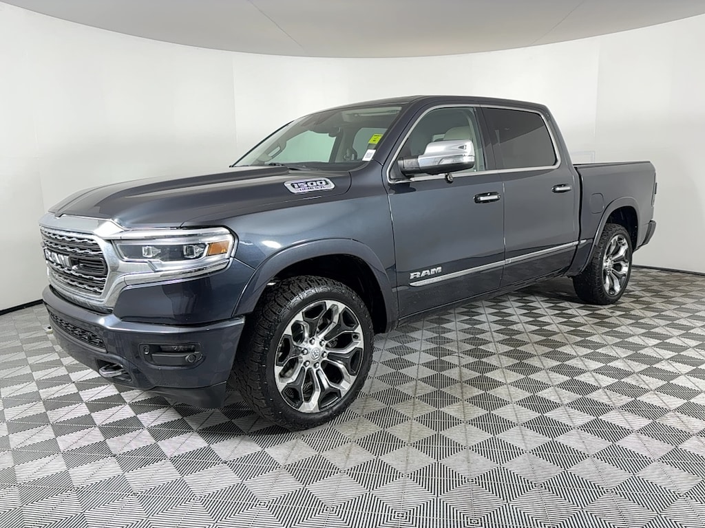 FUEL EFFICIENT 21 MPG Hwy/15 MPG City! Limited trim, Maximum Steel Metallic Clearcoat exterior and Indigo/Frost interior. Heated/Cooled Leather Seats, Sunroof, NAV, Running Boards, Back-Up Camera, 4x4, Bed Liner, Tow Hitch, WHEELS: 22 X 9 POLISH/PAINTED W/INS... DUAL-PANE PANORAMIC SUNROOF, ENGINE: 5.7L V8 HEMI MDS VVT, ANTI-SPIN DIFFERENTIAL REAR AXLE, TRANSMISSION: 8-SPEED AUTOMATIC (8HP7... TRI-FOLD TONNEAU COVER, LIMITED LEVEL 1 EQUIPMENT GROUP SEE MORE! KEY FEATURES INCLUDE Leather Seats, Navigation, 4x4, Heated Driver Seat, Cooled Driver Seat, Back-Up Camera, Running Boards, Satellite Radio, iPod/MP3 Input, Onboard Communications System, Trailer Hitch, Remote Engine Start, Dual Zone A/C, WiFi Hotspot, Smart Device Integration. MP3 Player, Keyless Entry, Privacy Glass, Child Safety Locks, Steering Wheel Controls. OPTION PACKAGES LIMITED LEVEL 1 EQUIPMENT GROUP harman/kardon® 19 Speaker Premium Sound, Adaptive Cruise Control w/Stop & Go, Advanced Brake Assist, Parallel & Perp Park Assist w/Stop, Ventilated Rear Seats, Full Speed Forward Collision Warning Plus, Lane Keep Assist, WHEELS: 22 X 9 POLISH/PAINTED W/INSERTS Tires: 285/45R22XL BSW All Season, DUAL-PANE PANORAMIC SUNROOF LED Dome/Reading Lamp, Dome Dual LED Reading Lamp, ENGINE: 5.7L V8 HEMI MDS VVT Active Noise Control System, Heavy Duty Engine Cooling, GVWR: 7,100 lbs, Dual Rear Exhaust w/Bright Tips, Hemi Badge, 220 Amp Alternator, TRI-FOLD TONNEAU COVER, ANTI-SPIN DIFFERENTIAL REAR AXLE, TRANSMISSION: 8-SPEED AUTOMATIC (8HP75). Ram Limited with Maximum Steel Metallic Clearcoat exterior and Indigo/Frost interior features a 8 Cylinder Engine with 305 HP at 6400 RPM*. EXPERTS REPORT It feels strong off the line, and it serves up excellent roll-on acceleration when its time to merge or make a pass. -Edmunds.com. Great Gas Mileage: 21 MPG Hwy. AFFORDABLE TO OWN Was $37,995. Approx. Original Base Sticker Price: $57,000*. .