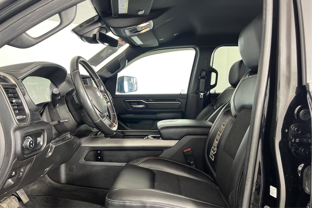 Diamond Black Crystal Pearl exterior and Black interior. Heated Seats, iPod/MP3 Input, Back-Up Camera, 4x4, Alloy Wheels, RADIO: UCONNECT 4 W/8.4 DISPLAY, REMOTE START SYSTEM, ENGINE: 5.7L HEMI VVT V8 W/FUELSAVER.. TRANSMISSION: 8-SPEED AUTOMATIC, LEVEL 1 EQUIPMENT GROUP, Tow Hitch. CLICK NOW! KEY FEATURES INCLUDE 4x4, Back-Up Camera, iPod/MP3 Input, Trailer Hitch, Aluminum Wheels. MP3 Player, Keyless Entry, Privacy Glass, Child Safety Locks, Steering Wheel Controls. OPTION PACKAGES LEVEL 1 EQUIPMENT GROUP Rear Window Defroster, Universal Garage Door Opener, Front Heated Seats, Power Adjustable Pedals, Heated Steering Wheel, Rear Dome Lamp w/On/Off Switch, Door Trim Panel Foam Bottle Insert, Sun Visors w/Illuminated Vanity Mirrors, TRANSMISSION: 8-SPEED AUTOMATIC (STD), ENGINE: 5.7L HEMI VVT V8 W/FUELSAVER MDS Active Noise Control System, Heavy-Duty Engine Cooling, HEMI Badge, 220 Amp Alternator (STD), RADIO: UCONNECT 4 W/8.4 DISPLAY Google Android Auto®, 8.4 Touchscreen, USB Mobile Projection, Integrated Centre Stack Radio, Apple CarPlay® Capable, REMOTE START SYSTEM. Ram Rebel with Diamond Black Crystal Pearl exterior and Black interior features a 8 Cylinder Engine with 305 HP at 6400 RPM*. EXPERTS ARE SAYING Great Gas Mileage: 24 MPG Hwy. A GREAT TIME TO BUY Was $42,995. Approx. Original Base Sticker Price: $49,600*. .