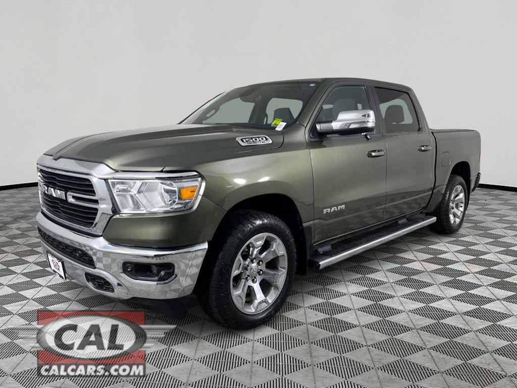 BIG HORN LEVEL 2 EQUIPMENT GROUP Rear Window Defroster, Auto-Dimming Rearview Mirror, Park-Sense Front & Rear Park Assist, Power Adjustable Pedals, Rear Power Sliding Window, Rear Dome Lamp w/On/Off Switch, Glove Box Lamp, Power 4-Way Driver Lumbar Adjust, 115V Rear Auxiliary Power Outlet, Media Hub w/2 USB Charging Ports, Power 8-Way Adjustable Driver Seat, Front Heated Seats, Heated Steering Wheel, Door Trim Panel Foam Bottle Insert, Class IV Receiver Hitch, Security Alarm, Big Horn Instrument Panel Badge, Remote Start System, SiriusXM Satellite Radio, 1-Year SiriusXM Subscription, For More Info, Call 888-539-7474, A/C w/Dual-Zone Automatic Temperature Control, 115V Auxiliary Power Outlet, 400W Inverter, 7 Customizable In-Cluster Display, Universal Garage Door Opener, 2nd Row In-Floor, TRANSMISSION: 8-SPEED AUTOMATIC, ELECTRONIC LOCKING REAR DIFFERENTIAL, ENGINE: 5.7L HEMI VVT V8 W/FUELSAVER MDS Active Noise Control System, 180-Amp Alternator, Heavy-Duty Engine Cooling, GVWR: 3,220 kgs (7,100 lbs), Bright Dual Rear Exhaust Tips, HEMI Badge, 9 ALPINE SPEAKERS W/SUBWOOFER, RADIO: UCONNECT 4C NAV W/8.4 DISPLAY Google Android Auto®, SiriusXM Traffic, USB Mobile Projection, Disassociated Touchscreen Display, HD Radio, Integrated Centre Stack Radio, For Details Visit DriveUconnect.ca, A/C w/Dual-Zone Automatic Temperature Control, 5-Year SiriusXM Travel Link Subscription, GPS Navigation, 5-Year SiriusXM Traffic Subscription, SiriusXM Travel Link, 4G LTE Wi-Fi Hot Spot, 8.4 Touchscreen, Apple CarPlay® Capable, WHEELS: 20 X 9 CHROME-CLAD ALUMINUM, REMOTE START SYSTEM. Ram Big Horn with Olive Green Pearl exterior and Diesel Grey/Black interior features a 8 Cylinder Engine with 305 HP at 6400 RPM*.